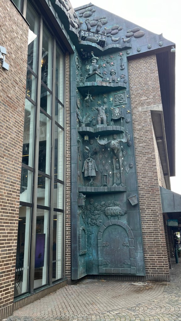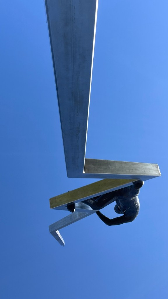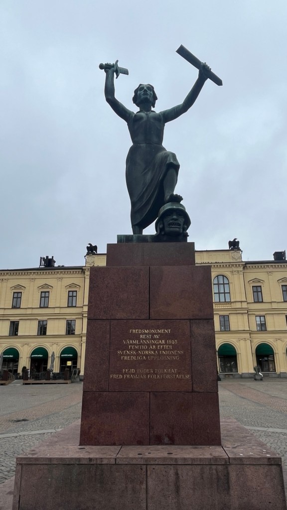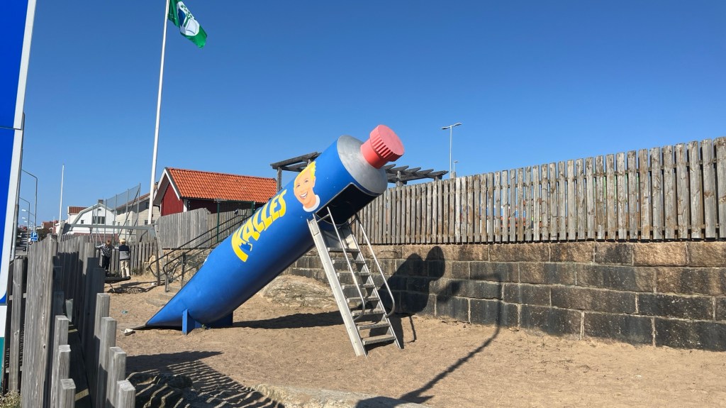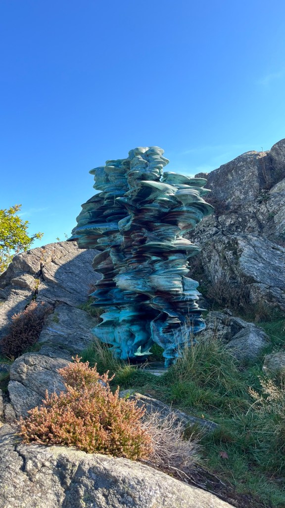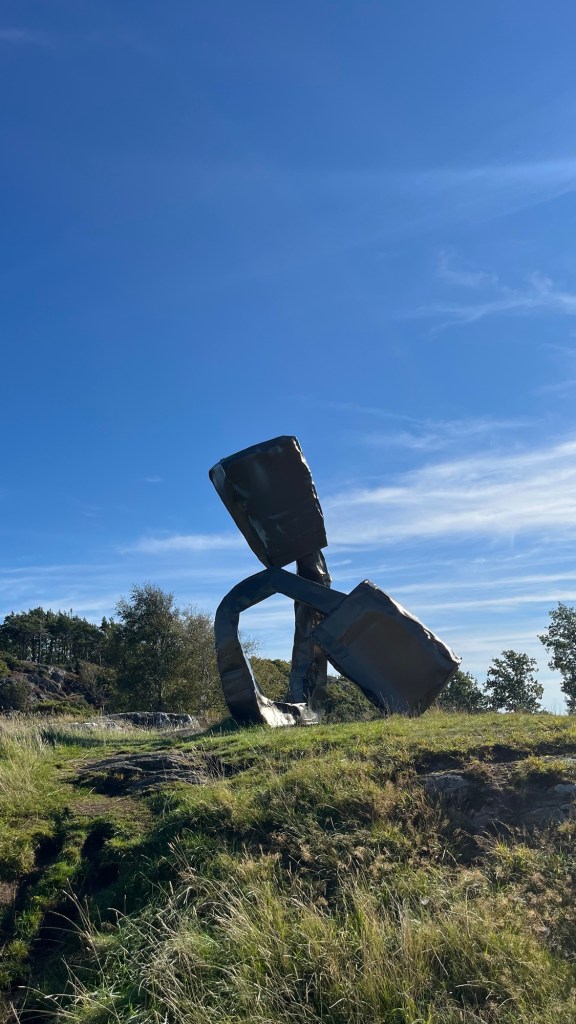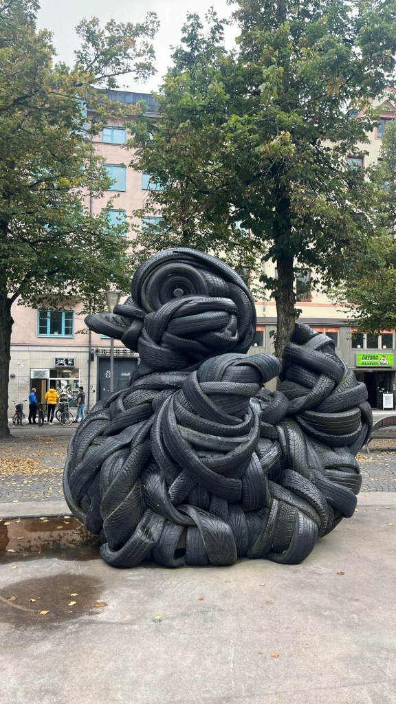 Inside-out, avec un lit trop petit tout en haut et une tirelire pour les rêves en bas …“Avec le sac à main comme arme”, ici affublée encore d’un keffieh de circonstance. Celle-là, je la trouve vraiment chouette, l’artiste Susanna Anwin utilisant le personnage de sa tante et de son sac à main de façon récurrente dans ses œuvres. On début on croit à un sac à dos d’écolière, et on s’aperçoit que c’est des bidons, probablement pour de l’eau. Tous les enfants du monde n’ont pas encore un robinet à la maison …Version plus carrée de Sisyphe, je parle bien sûr de la pierre et j’évite le thème du robinet.Allez, une en bois domestique, le farfadet des contes nordiques, farceur et gaffeur. Me rappelle quelqu’un …Oui, ben voilà, pub pour Swarovski, je sais pas, mais ça en jette en tout cas C’est pas vraiment une statue, mais bon. Pis je me demande, quand ton enfant y a joué une heure et que tu le prends dans tes bras, il sent le saumon ?Anna, 24 mètres de haut, migrante espagnole de par son créateur, mais bien acclimatée au côtes nordique à en croire sa pâleur et son regard tourné vers l’intérieur. Ou alors c’est à cause de l’odeur de son gamin qui vient de faire une heure de toboggan …Oui, ben non, moi non plus, aucune idée, même pas sûr que ce soit d’origine terrestre ce truc. Peut être tout simplement la vidange sauvage des WC d’un UFO passant en rase-motte ?Cherche pas, faut la voir en vrai …Ça me laisse songeur … sans doute fondue au soleil, était-ce à la base une belle et fière ode au Q-tips ?En 1905 le Royaume de Suède et de Norvège se scinde pacifiquement en deux suite à un plébiscite côté Norvegien (plus de 99% de oui). Du coup, 50 ans après on produit ça pour montrer qu’on peu résoudre ce genre de problèmes sans guerre, civile ou pas. Elle a été élue la statue la plus moche de Suède. Oui, bon, c’est pas une statue, mais c’est trop chouette alors je la met là, voilà !Non, là aussi je cherche… Une de mes préférées, surtout que si tu regardes bien, y’a des clous partout 😅