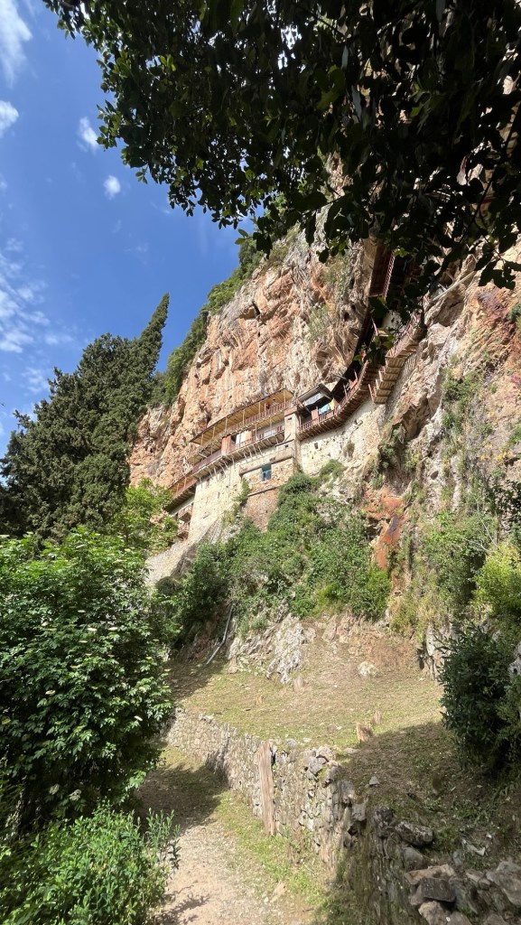 Mais reprenons : au début étaient les gorges du Lousios. Étroites, à pic, impénétrables à cause d’une végétation dense de type maquis humide, si si ça existe, alors du coup : ne serait-ce pas là le terrain idéal pour aller y planquer des moines, dans des monastères plus austères les uns que les autres, sauf évidemment pour leurs ornements religieux qui en jettent, faut pas déconner avec le boss non-plus.