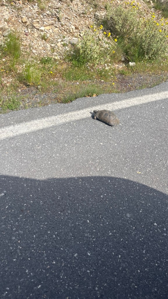 Et bien tout d’abord, te dire cher lecteur que les routes de montagne d’ici ne sont somme toute guère différentes de celle de là-bas, si ce n’est les fleurs de genêts onniprésentes, formant une allée jaune et odorante. Sinon, ben des virages, des fois en épingle, la montagne d’un côté et le précipice de l’autre, rien de bien surprenant pour un Helvète, quoi.