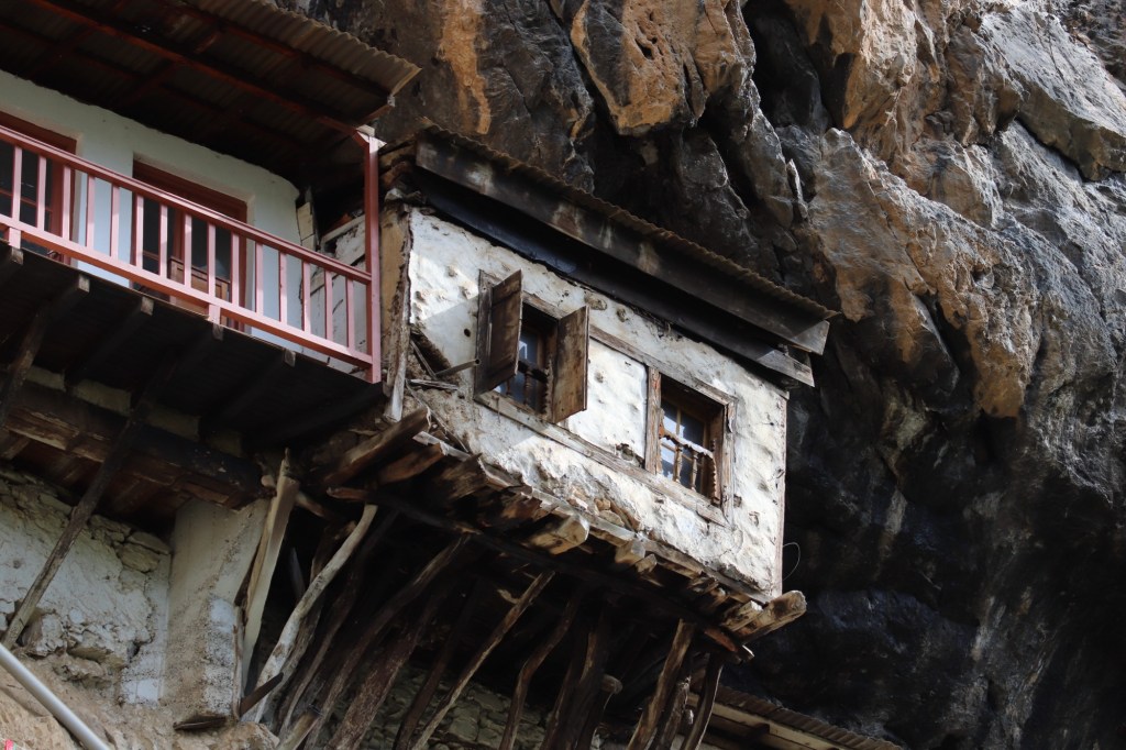 Mais continuons notre descente dans les gorges pour traverser la rivière et remonter en direction du prochain monastère, évidemment en haut, tout en haut, j’exagère à peine, et de l’autre côté …