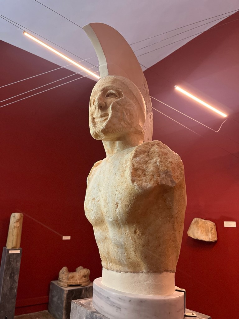 Je parle ici bien du roi de Sparte conduisant ses 300 Spartiates au sacrifice ultime à la bataille des Thermopyles, histoire de laisser l’armée grecque se regrouper pour continuer à affronter les Perses. On pense avoir retrouver une statue à son hommage, note cher lecteur le sourire à moitié amusé du héros sentant le sacrifice inéluctable et, regardant les milliers de Perses débouler, se dire qu’il va faire un carnage avant de tirer sa révérence :