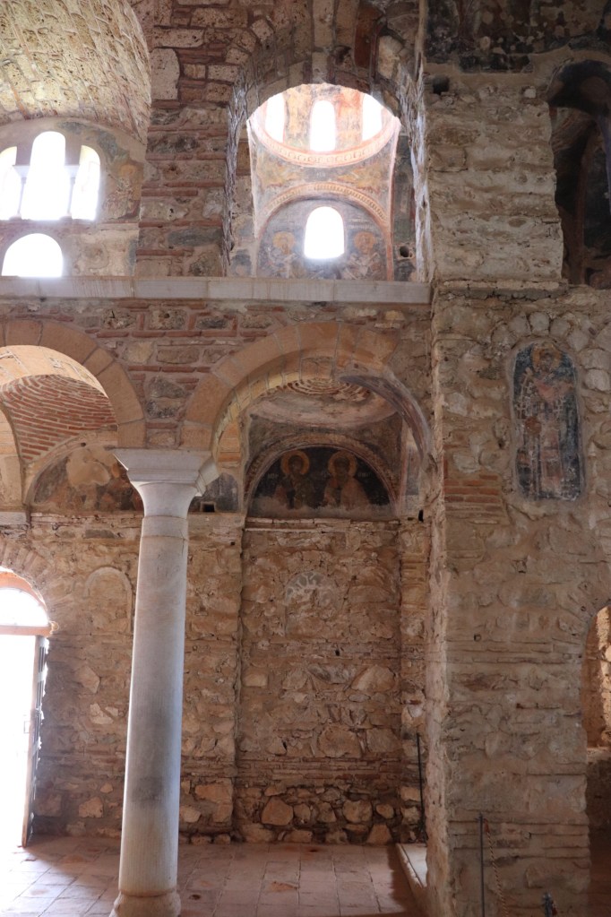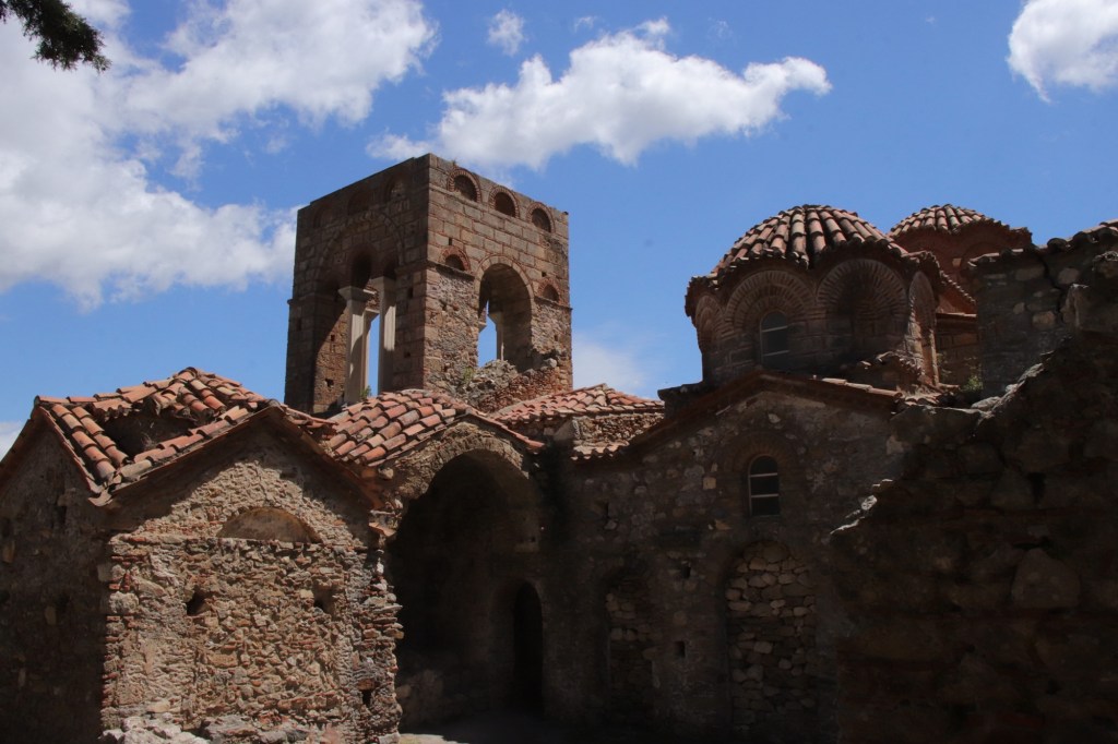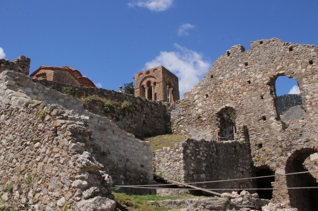 Cette ville en pente, qui met Lausanne dans le catégorie des villes « gentiment vallonées », a été occupée, si j’ai bien compris, principalement entre le 13 et le 19 siècle. S’y sont succédés comme souvent ici moultes cultures, mais le byzantin y a dominé, quoique bien influencé par ses voisins italiens. Le bâti est sur place, et donne une bonne image de ce qu’était la ville à son apogée, avec selon certaines sources jusqu’à 40’000 habitants. Les trouvailles des fouilles sont elles dans le petit musée à Sparte, ville distante d’une poignée de kilomètres de Mystras, dans la plaine.