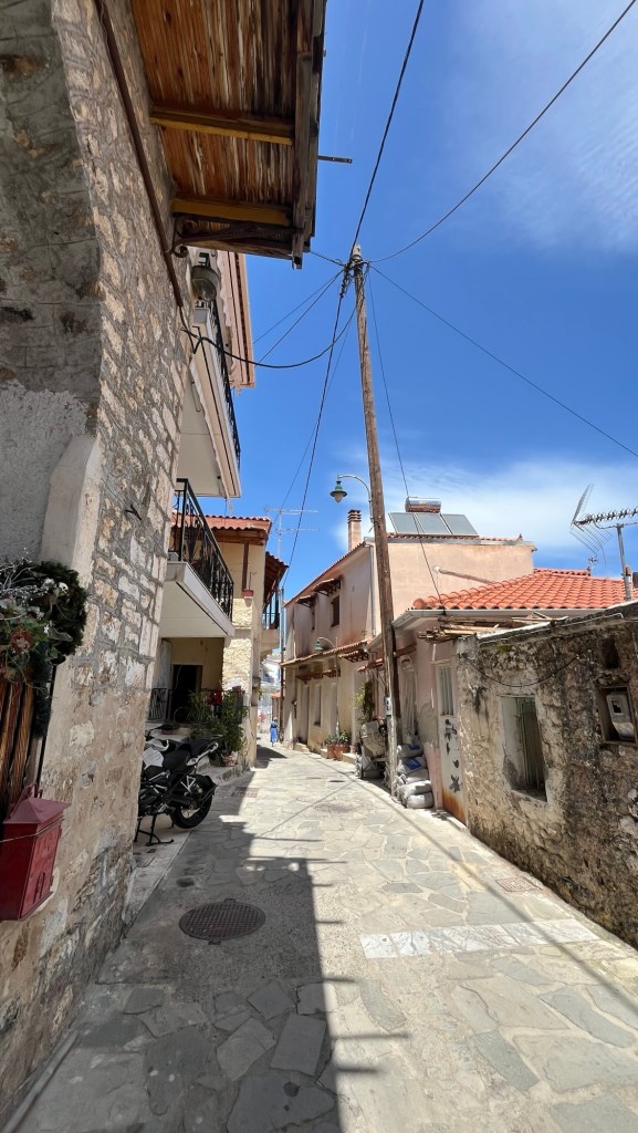 AccompagnĂ©s des vaillants et toujours partants B&B, nous avons donc essentiellement vadrouillĂ© le long des doigts un et deux, en partant de lâouest, passant aprĂšs les retrouvailles Ă Pylos par Stoupa, et maintenant Gythios, et rayonnant depuis ces bases vers les « chĂŽses tâa voĂźre » comme lâĂ©crit notre guide au Ă©ditions Dumont et qui semble avoir un lĂ©ger accent marseillais (en tout cas câest nettement plus drĂŽle Ă lire « avĂ© Pagnol dans ta calleubĂąsse »).