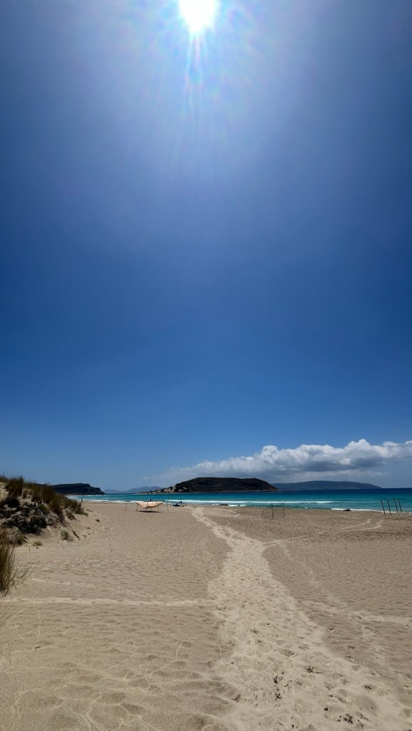 Elafonisos est magnifique, une petite île pelée à trois brasses du continent, mais des plages superbes et des touristes heureux. Et des couchers de soleil sympas. Tout ça pour toi, lecteur enfin libéré de ta corvée de lecture et prêt à laisser tes mirettes faire toutes seules le reste du boulot, le cerveau en mode économie d’énergie.
