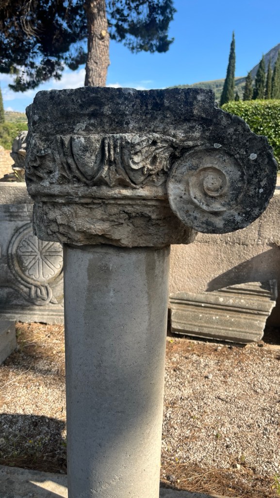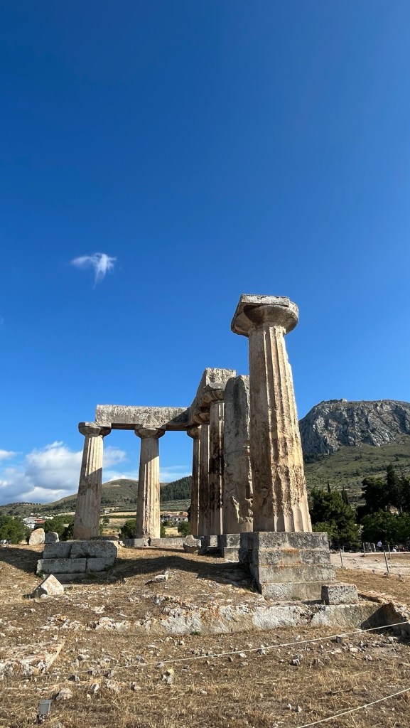 Alors imagine, cher lecteur faiseur de Princes, couronneur de Rois, bénisseur d’Empereurs, et , mais j’ose espérer que j’en ai pas, électeur de Trump, imagine ma profonde stupeur, teintée d’une légère irritation, lorsque je me vis découvrir en parcourant benoîtement le site d’Archea Korinthos, que mes fidèles corinthiennes, ioniques et doriques, le trio de supportrices de tant de temples, de porches et de frontons, et bien ce trio n’était que la moitié du gang.