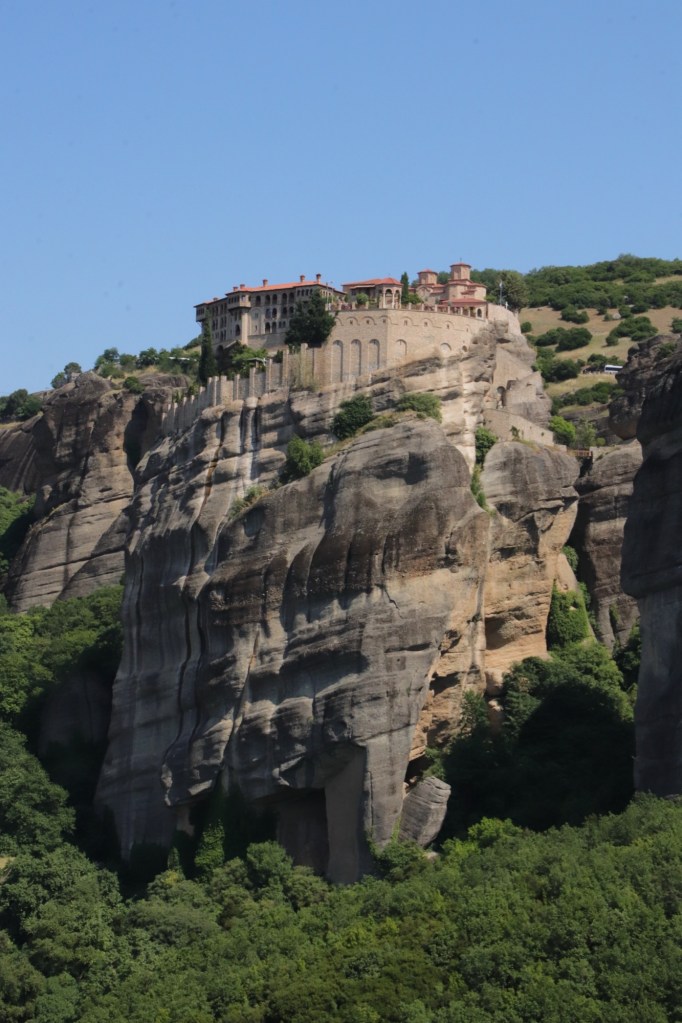 Mais c’est le fameux (?) Athanase, chassé du Mont Athos (cf https://brexitbreakout.wordpress.com) par les constantes invasions de pirates turcs, qui, avec deux autres camarades fans d’ascétisme et sur les conseils d’un évêque local qui visiblement aimait à peupler ses arrière-paroisses, donc Athanase en 1333 environ (on est pas à une année près en ce temps-là, et 1333 c’est plus facile à retenir que 1334) a l’idée d’agrandir une chapelle perchée sur un des ces doigts et d’en faire une communauté d’ascètes, même si apparement dès le début ils étaient déjà plus.