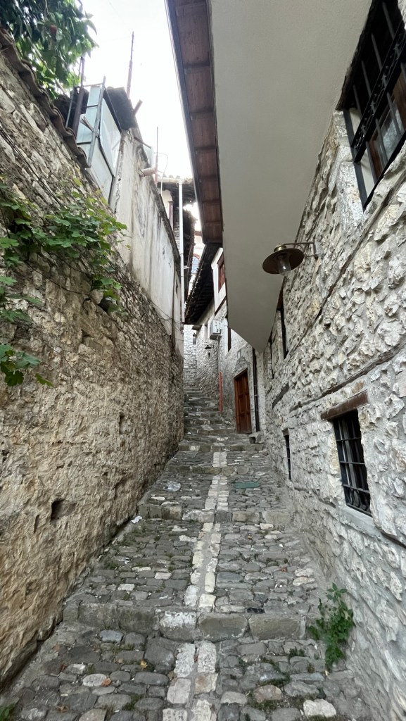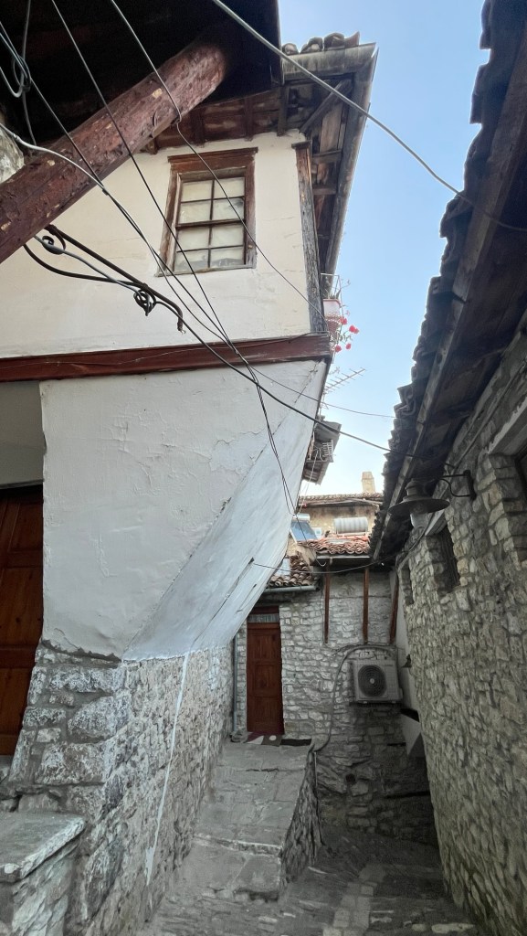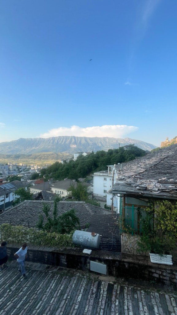 Notre premier camping, à Gjirokaster, belle vielle ville en soi, un bazar un peu trop touristique peut-être. La rencontre avec Jimmy, le proprio. Son témoignage est sans appel : un boulot en fabrique rapporte entre 600 à 800 équivalent euro, impossible de vivre avec ça ici, même à à deux salaires. Donc il en faut au minimum le double, soit 2 boulots par personne pour s’en sortir, soi et sa famille. En ville c’est possible, en campagne …